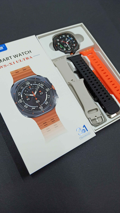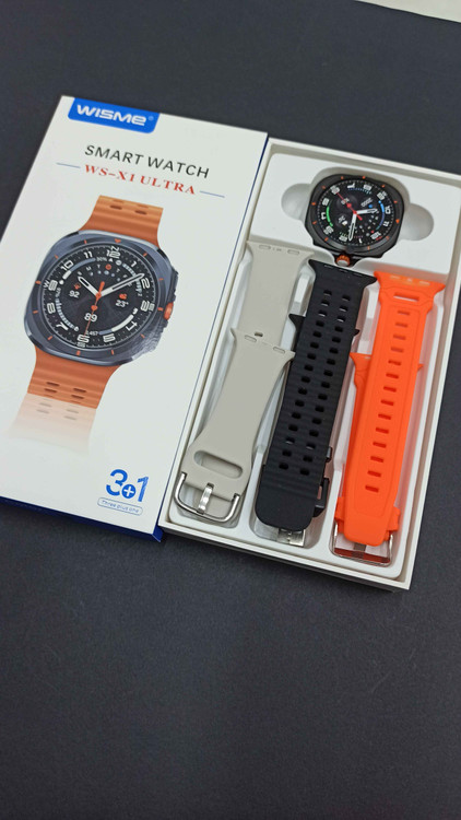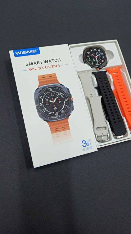 ساعت هوشمند مدل ws-x1 ultra طرح گلکسی واچ از برند wisme با کیفیت بالا و قیمت اقتصادی داری 3 عدد بند سیلیکونی در رنگ های مختلف