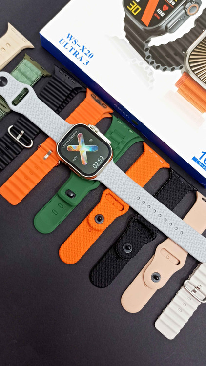 ساعت هوشمند x20 ultra 3 از برند wisme با قابلیت های مختلف و 10 عدد بند در طرحها و رنگهای مختلف