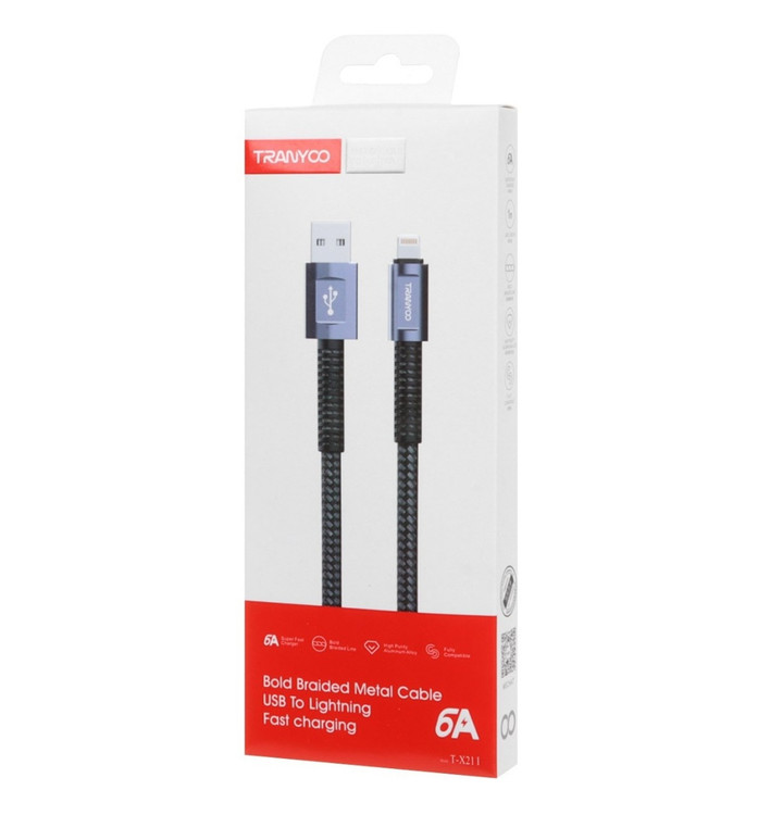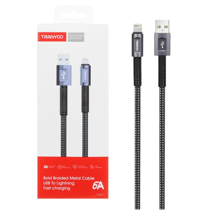 کابل شارژ و انتقال اطلاعات با شدت جریان 6 آمپر و قابلیت شارژ سریع با طول 1 متر و جنس کنفی برای تبدیل یو اس بی به لایتنینگ مخصوص اپل مورد استفاده قرار می گیرد از برند اورجینال tranyoo